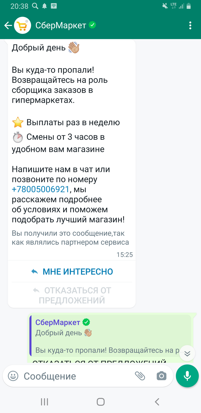 P.S. Спустя немного времени "чудесный" Сбермаркет обязательно напомнит о себе. Будут вам звонить и писать, звать на работу))