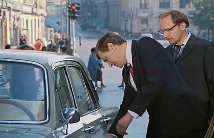 Несмотря на то, что на момент съемок фильма Олегу Басилашвили было уже за 40, он не умел водить автомобиль. Но по сценарию требовалось, чтобы он лично проехал за рулем "Волги" до работы 100 метров.