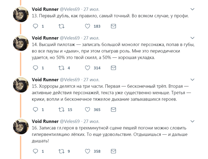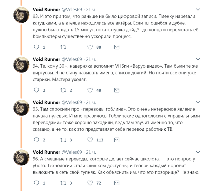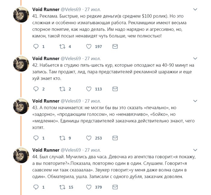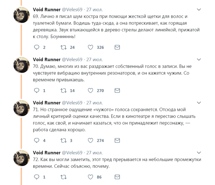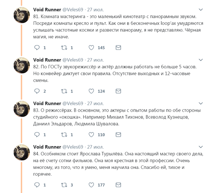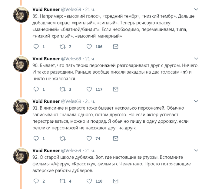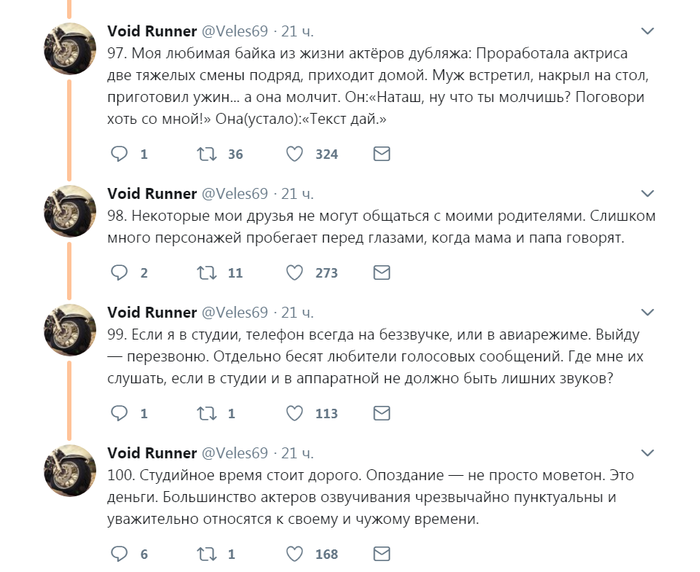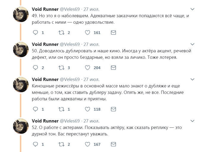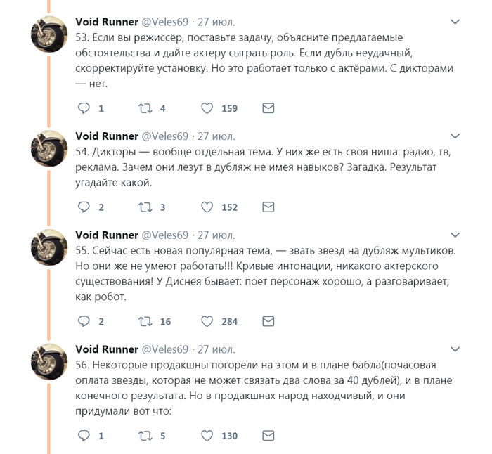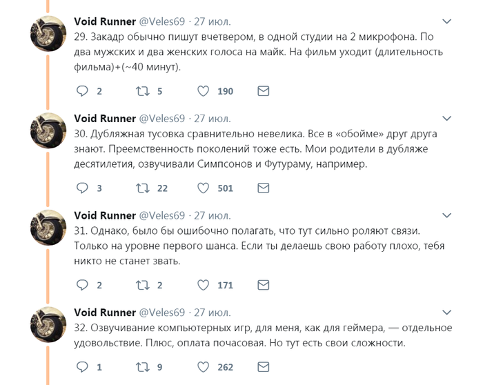 27 июля Быстров запустил в твиттере тред «1 лайк = 1 интересный факт об озвучивании фильмов».