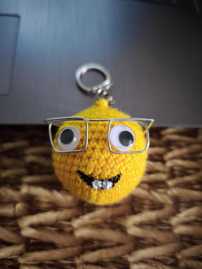 У меня есть ТГ-канал "Посиделки у Ладушки". Я там периодически провожу розыгрыши. Летом проводила розыгрыш брелка. Это был смайлик Ботаник. Выиграла его Кристина.