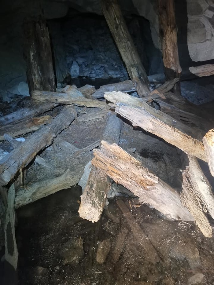 Дошли до верхнего входа в штольню. Вооружились фонарями и пошли исследовать темные подземелья, а вдруг там Йети и прячется от нас всех? – нет, увы он там не прятался. Там вообще никого не было кроме нас. От точки входа, метров через десять есть три ответвления. Налево пойдешь – нихрена не найдешь! Там лишь небольшая комната и похоже там кто-то, что-то жрал. Прямо пойдешь – дорогу в никуда обретешь. Там непродолжительный тоннель заканчивающийся тупиком. Направо пойдешь – сталкера найдешь. Там мой друг и добывал себе слюду, нарушая покой и тишину подземелья.