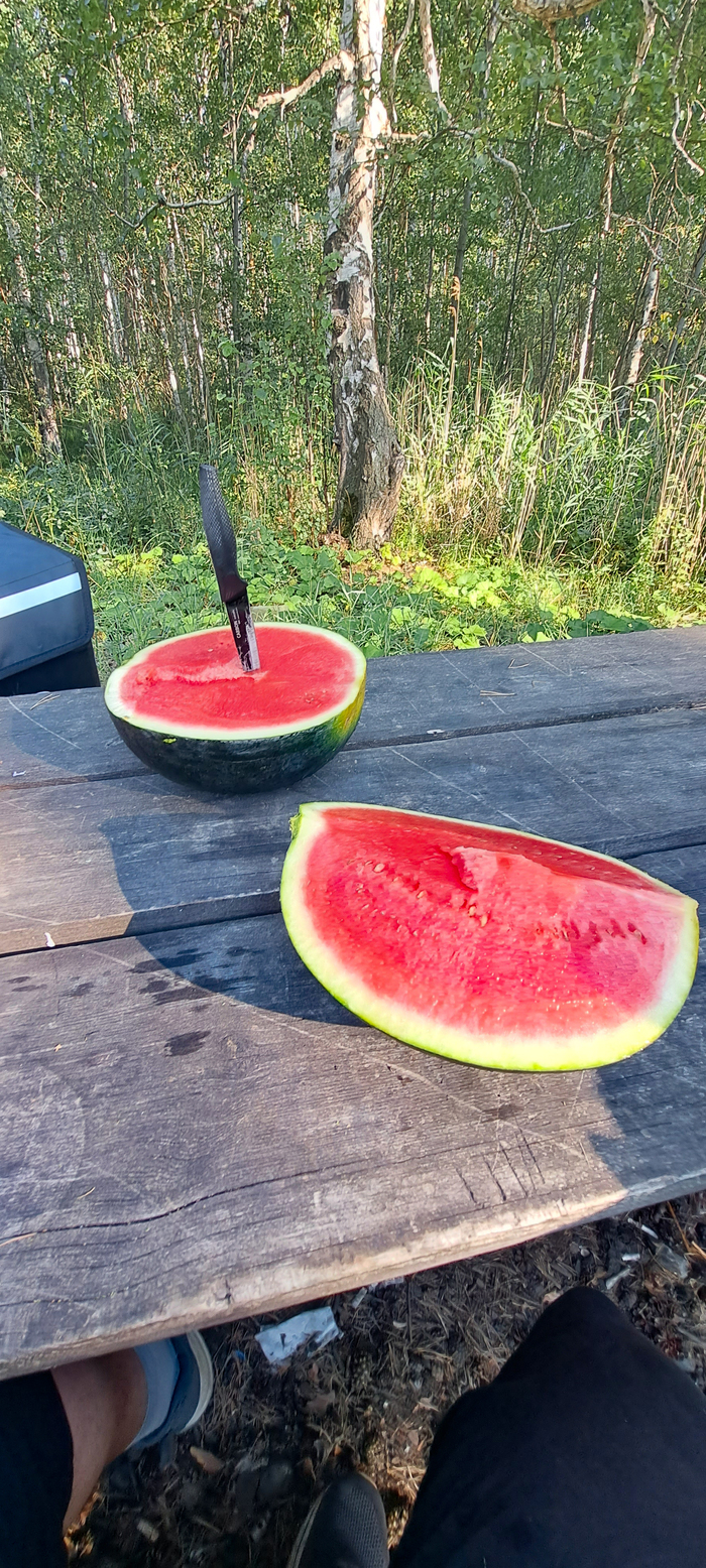 У нас с собой был заранее купленный и охлажденный очень вкусный арбуз сорта Черный принц. Пока я его нарезал на хрустящие сладкие кусочки, меня цапнула муха-цокотуха слепень. Перекусив и прибрав за собой, мы двинулись в сторону Кыштыма и далее домой, в Челябинск. В заключении хочу сказать о том, что лучше проводить выходной день в путешествии. Путешествуйте семьями или как я веселой компанией. Следующая поездка состоится уже скоро. Следующая точка, город Карабаш и окрестности.