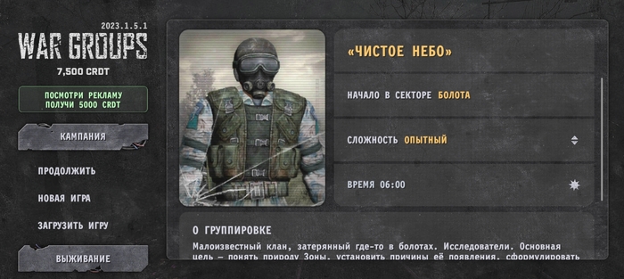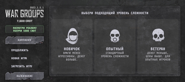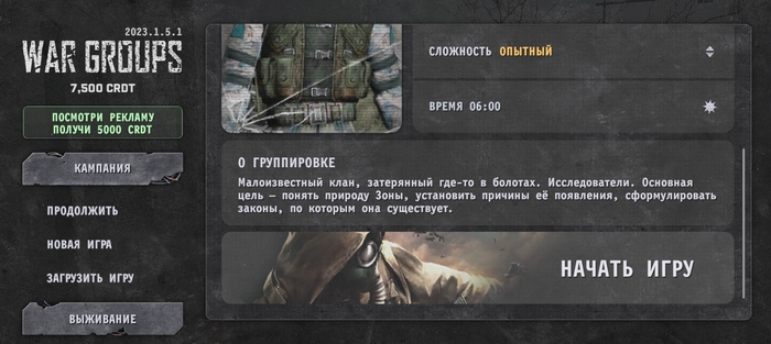 И вот мы выбрали группировку и видим, что можно настроить только сложность игры и всё.