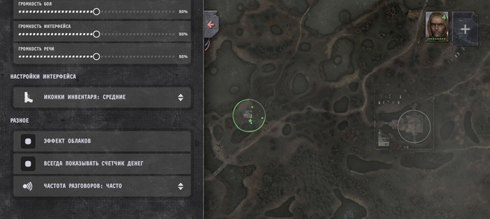 Зайдя в настройки, мы можем только отрегулировать звук, счётчик денег, частоту переговоров и эффект облаков.