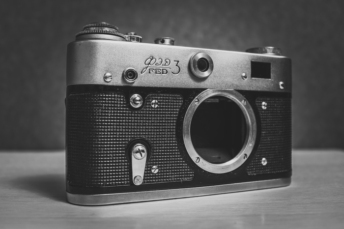 Фотоаппарат "ФЭД-3" (Феликс Эдмундович Дзержинский) производился Харьковским производственным машиностроительным объединением "ФЭД" с 1961 по 1979 год. Фотоаппарат имеет литой алюминиевый корпус. Конкретно этот фотоаппарат 1973 года выпуска и тогда он стоил 49 руб. 50 коп. Имел штатный фиксовый объектив "Индустар И-61" с фокусным расстоянием 52 мм и диафрагмой f/2,8. Всего было выпущено 2 086 825 штук. По нынешним временам на мой взгляд и вкус смотрится очень даже стильно и красиво. Сейчас современные фотоаппараты некоторых марок выпускают в ретродизайне под тот стиль.Фотоаппарат "Смена-8М" выпускался объединением ЛОМО с 1970 года по 1990 год. Объектив - Триплет "Т-43" 4/40, несменный. Доступные значения диафрагм — от f/4 до f/16. "Смена-8М" занесена в книгу рекордов Гиннесса как самый массовый фотоаппарат планеты. Всего было выпущено 21 041 191 экземпляров. Этот экземпляр из последних, 1990 года выпуска , стоил 15 рублей. Корпус пластиковый, смотрится не так шикарно как алюминиевый у ФЭДа, но не менее стильно. Он до сих пор пользуется определённой популярностью среди современных любителей плёночной фотографии за свою неприхотливость, лёгкость, достаточную функциональность и простоту ремонта и юстировки.