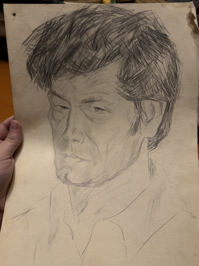 Бабушка и дедушка в молодости, портрет и автопортрет, короткие зарисовки