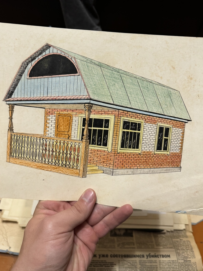 Он мог построить дом по своему же эскизу (садовый домик на картине ниже до сих пор стоит в нашем саду)