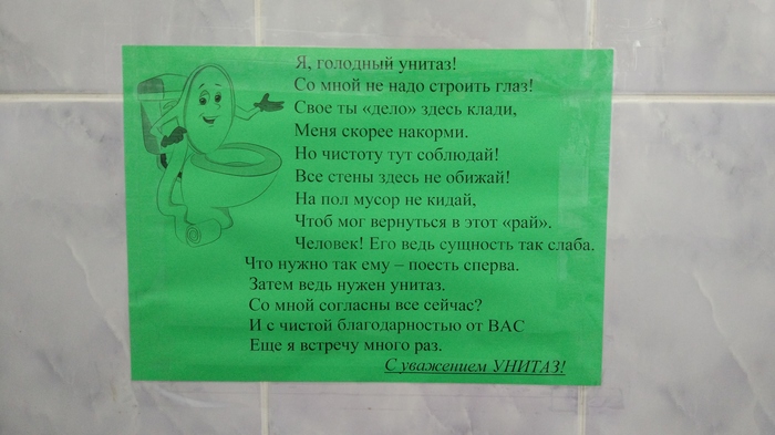 В порту г. Осташков чья-то безудержная жажда творчества вылилась (если не сказать чего похуже) вот в такую назидательную инструкцию посетителям местного туалета.