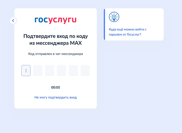 Пытался только что войти с компьютера на госуслуги. Меня попросили ввести код из мессенджера Макс. Когда я вошел в мессенджеры Макс, у меня спросили, просили ли у меня ввести код. Я нажал да, попросили.