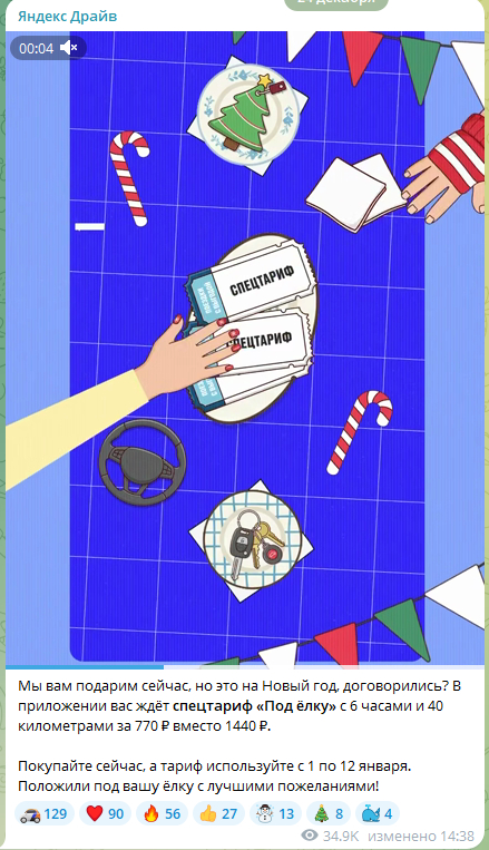 Готовились к новогодним каникулам заранее и придумали спецтарифы, которые действовали все выходные. Почти каждый пост очень нативно и с юмором напоминал о предложении.