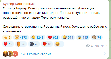 а следующее утро, 1 января разыграли драму и «уволили» сотрудника, который этот пост опубликовал. (А кто-то ведь поверил)