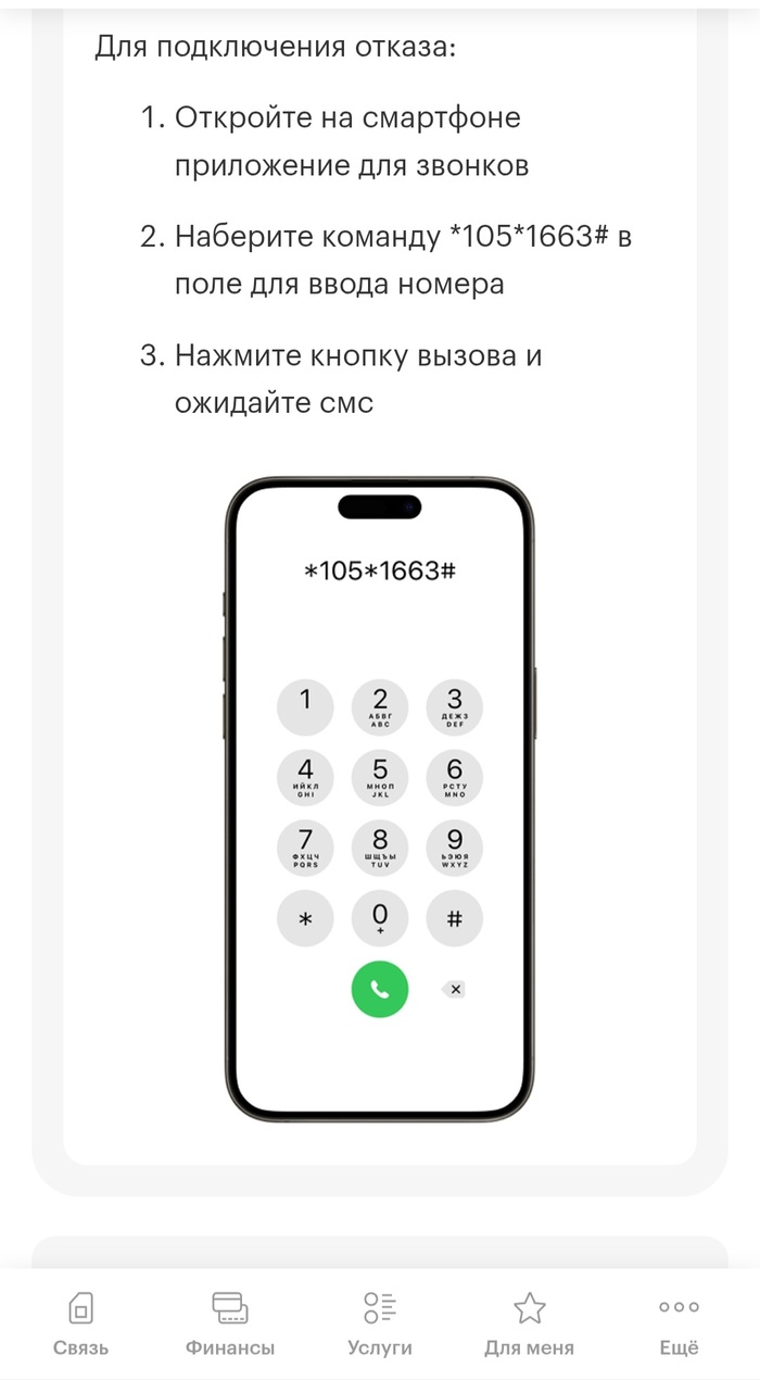 1. Отказ от "супервыгодного" предложения в СМС стало отдельной опцией, которую можно подключить только через Ussd-команду, которую можно узнать по персональной ссылке.