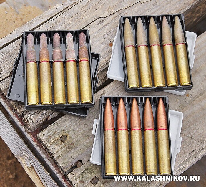 Наверху слева патроны СЦ-130 ВПС, справа – СЦ-130 ПТ2, внизу – СЦ-130 ПТ. Обратите внимание на странный внешний вид патронов в верхнем ряду – хранятся они в оружейной комнате вместе с самыми разными другими боеприпасами, без проблем сохраняющими свой товарный вид в имеющихся условиях. Фото Михаила Дегтярёва
