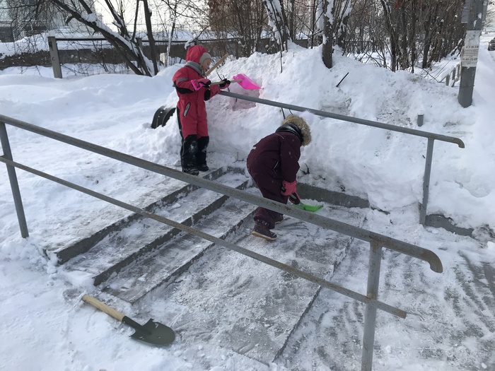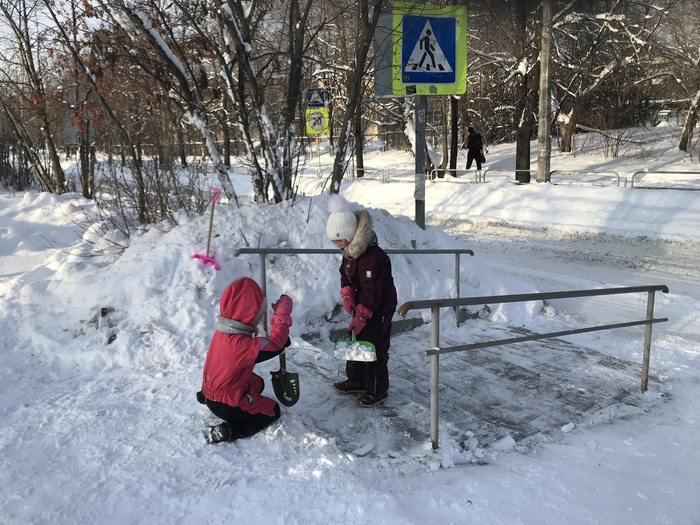 В этом году у нас много снега, и коммунальные службы не везде справляются с работой. Если у нас есть силы и время – то мы стараемся внести свою лепту в доступность окружающей среды.