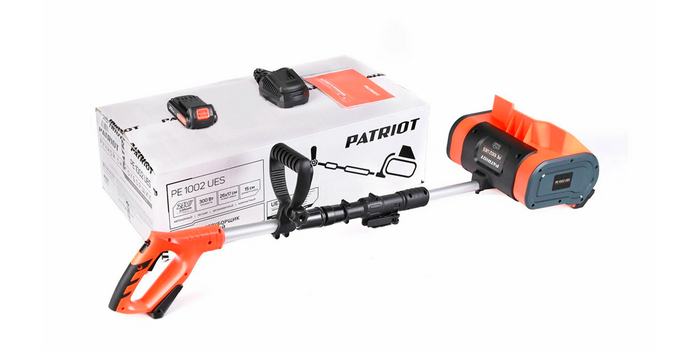 И начнем с лучших аккумуляторных снегоуборщиков, которые понравятся любителям портативного оборудования. Открывает раздел недорогая модель PATRIOT PE 1002 UES. Она наделена телескопической ручкой, что позволяет отрегулировать длину под рост пользователя, а также облегчает хранение и транспортировку.