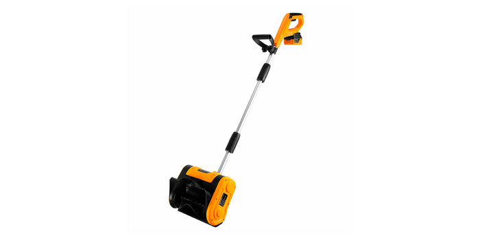 Следующий аккумуляторный снегоуборщик DEKO ST40V обладает большей мощностью и работает от двух Li-Ion батарей Makita-type, которые идут в комплекте. Зарядное устройство на два аккумулятора также есть в комплектации. Автономность модели – порядка 30 минут. Она снабжена телескопической трубой и двумя рукоятками – основной и дополнительной, для лучшего удержания.