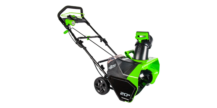 Лучшим аккумуляторным снегоуборщиком стал Greenworks 2600607 – это самоходная модель, снабженная двумя опорными колесами диаметром 17 см и надежным бесщеточным двигателем серии DigiPro, который равен по мощности бензиновым аналогам. Он имеет высокий крутящий момент, работает с низким уровнем шума и вибраций.