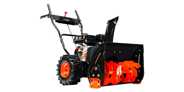 Модель наделена вместительным топливным баком на 3,6 л и позволяет выбрать удобную скорость для передвижения из 5 передних и двух задних передач. Шины с глубоким протектором обеспечивают хорошую проходимость и маневренность на скользких и неровных участках. Двойные рукоятки обеспечивают удобный хват для оператора. Все рычаги и органы управления вынесены ближе к пользователю. В целом, оптимальный снегоуборщик надежным двигателем в категории цена — качество.