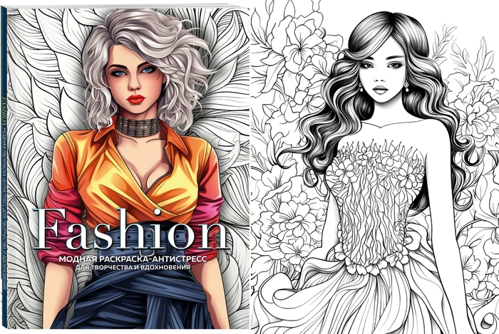 Модная раскраска-антистресс Fashion для творчества и вдохновения. На страницах этой книги для творчества вас ждут 22 детальные иллюстрации, потрясающие наряды в стиле главных домов моды, прекрасные портреты изящных моделей, а также заряд вдохновения для создания собственных стильных аутфитов! Ссылка на неё