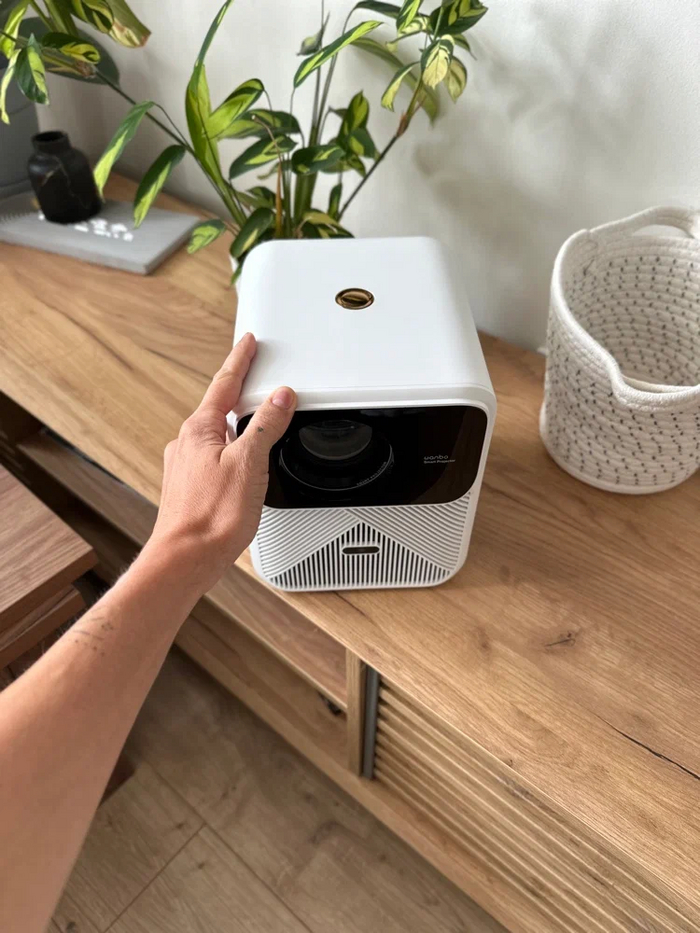 Проектор 4K Wanbo Mozart на Android 9.0 для просмотра фильмов с размером изображения по диагонали - от 55 до 120 дюймов, оснащён полночастотными динамиками и мощным сабвуфером. Автофокус, Wi-Fi, Bluetooth. Ссылка на него