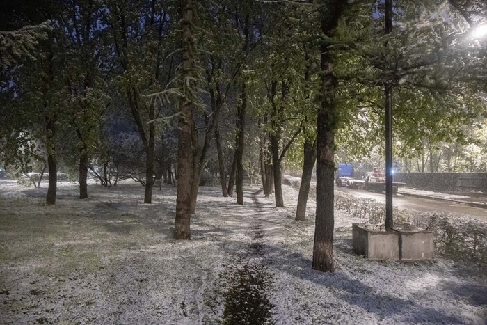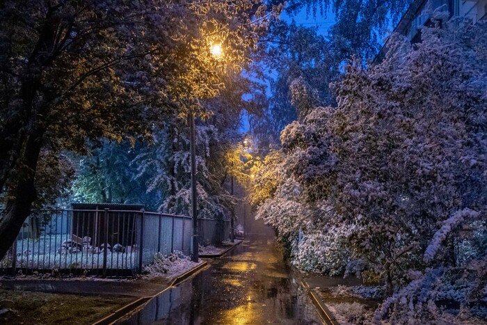 Случайно вылез в окно снять майский снегопад как вдруг сверкнула молния и загремел гром. Эмоции конечно у меня смешные, удалять не стал)
