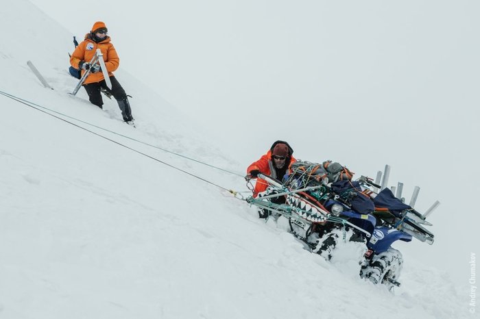 Он рассказал, что были ребята которые физически не смогли подняться до конца, поскольку сил такое восхождение требует крайне много, особенно в условиях зимы. И что ни ратрак ни классические снегоходы не могут завезти на вершину людей даже за очень большие деньги.