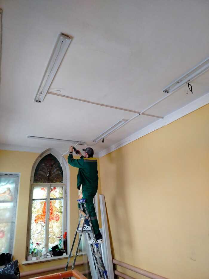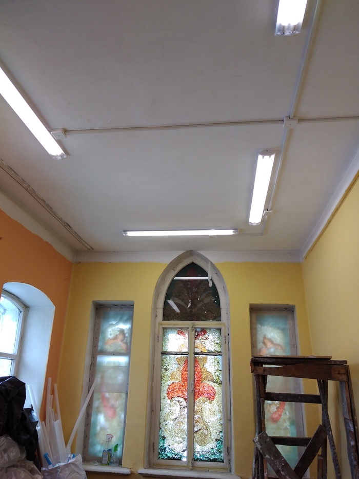 Нам удалось собрать деньги и заменить проводку на втором этаже старинного здания, и частично на первом.