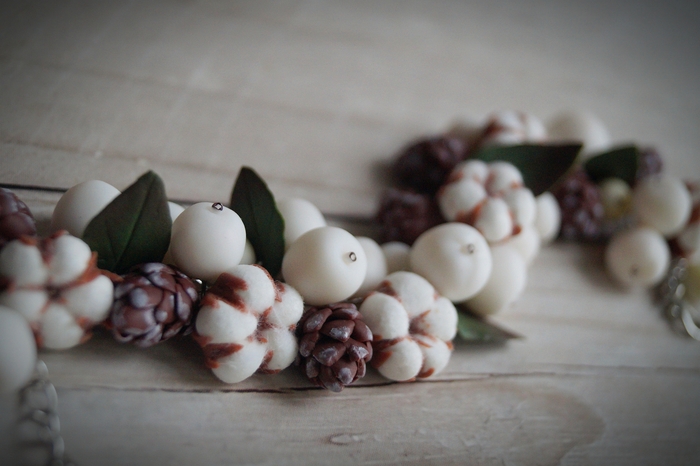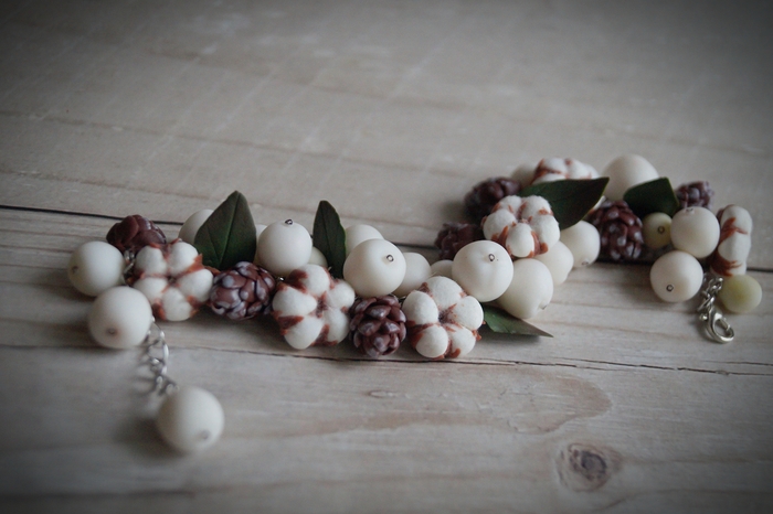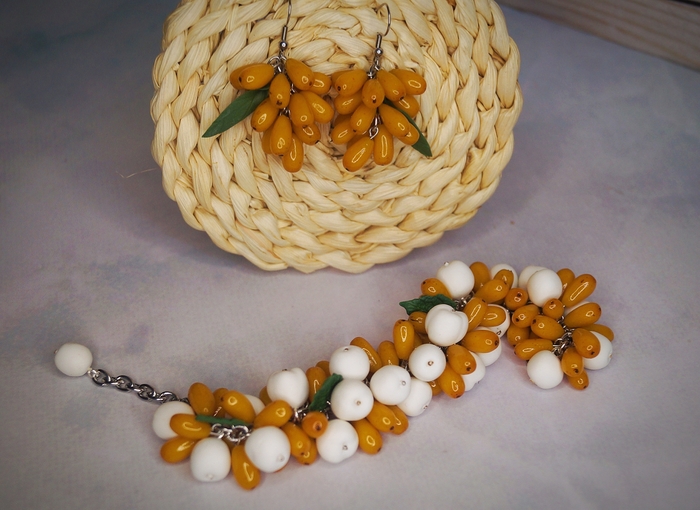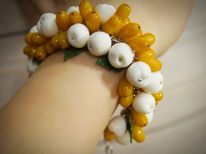 Добавила облепихи к снежноягоднику. Пробую разбавить белый цвет в браслете