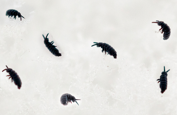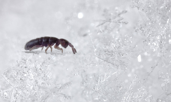Существа, похожие на насекомых, получили прозвище «снежные блохи», но к блохам они отношения не имеют (да и к насекомым их отнести нельзя): это коллемболы, или ногохвостки. Сейчас их относят к отдельному классу мелких членистоногих.