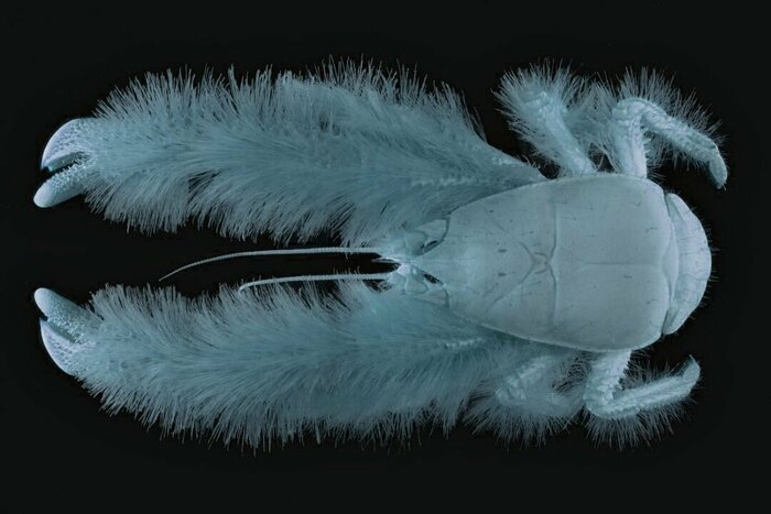 Несмотря на то, что пресса окрестила животное "крабом", это скорее рак, по научной классификации. И никакой шерсти на нём нет, это колонии нитчатых бактерий, которые животное выращивает на своих конечностях в дополнение своему рациону. Эдакий огород буквально созданный своими собственными руками, в смысле клешнями и ногами.