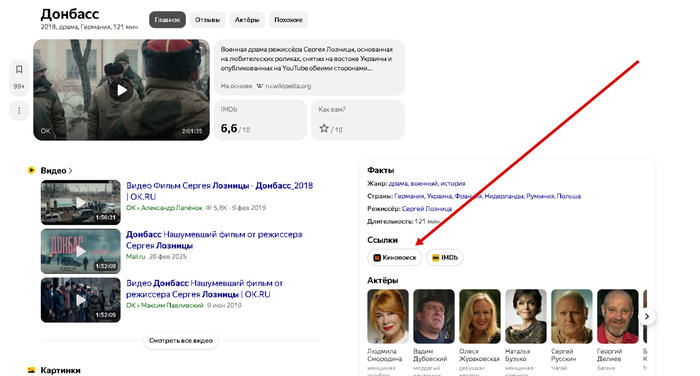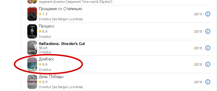 Название: "Донбасс". Режиссёр: С.Лозница. Ввожу название в поиске. А Кинопоиск мне и отвечает: а нет такого фильма.