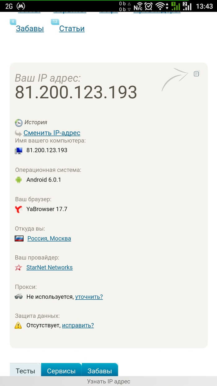 Подключаемся, получаем IP. Спустя пару секунд программа сообщает, что подключение успешно выполнено и мы пробуем загрузить 2ip.ru