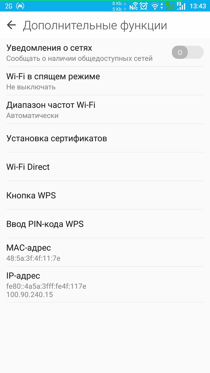 5.2) Прописываем понравившийся mac себе и перезагружаем девайс. Заходим в настройки wifi -> дополнительные и смотрим: