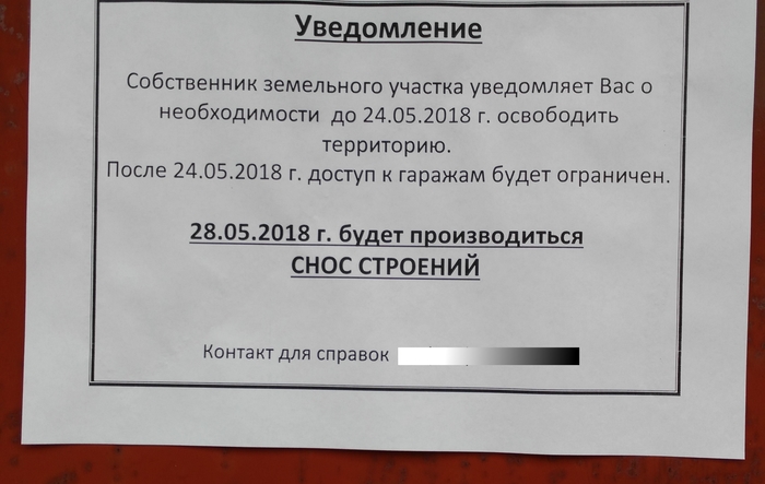 То есть пока все выглядит так что или ты в недельный срок (причем с момента доставки почтового отправления в ОПС) являешься и подписываешь соглашение, по которому одна сторона обязуется освободить гараж и подписать акт "об освобождении под снос", а другая сторона - выплатить компенсацию "по методичке" (не имеющую никакого отношения к реальной стоимости), или приходят "мигранты" и тупо сносят тебя вместе с имуществом. С одной стороны, подписание подобного соглашения можно расценить как добровольное согласие, с другой стороны, вопрос компенсации в случае неподписания соглашения в заданный срок (и сноса до решения арбитража) становится совсем не очевидным - как-то все это не укладывается сознании. Лето - кто-то элементарно отсутствует в городе и получит почтовое отправление (хранящееся на почте 30 дней) после истечения отведенного управой срока. Насколько это вообще все правомерно в нашем "чудесном городе" и куда копать? Спасибо если дочитали )