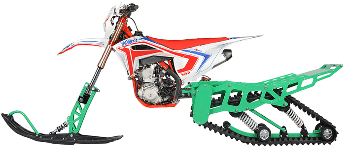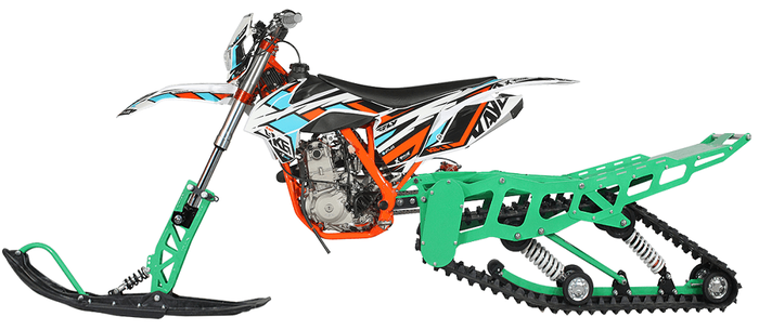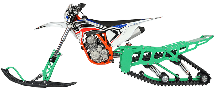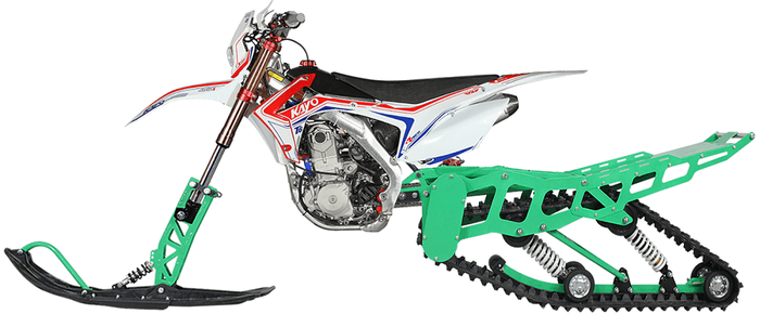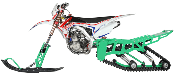 4. 420 кубов и выше. Мы их называем условно "пол литровые". Это полноценные кроссовые мотоциклы. Мощности этих мотоциклов хватает для любого гусеничного комплекта, но не забывайте и про высокий вес и габариты. Такой комплект подойдет для для каждого водителя.