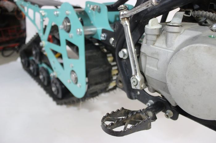 Подходит для мотоциклов 110-190 куб.см. По сути, гусеничный комплект сделает из вашего мотоцикла сноубайк.