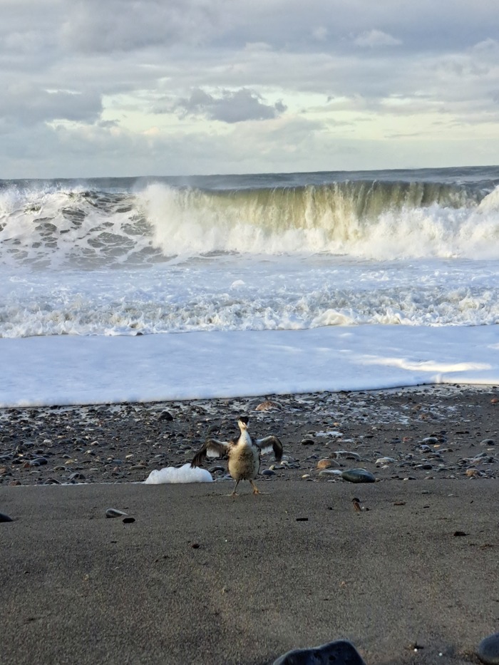 Видимо покрутило в волнах знатно. Выбрался, пытался обсохнуть. А отойти дальше от волн силенок уже и не хватает. Волны накатили с новой силой, затянули бедолагу, закрутили в белой от пены воде, он каким-то чудом выкарабкивался снова и снова, но опять оказывался в бурлящей воде.