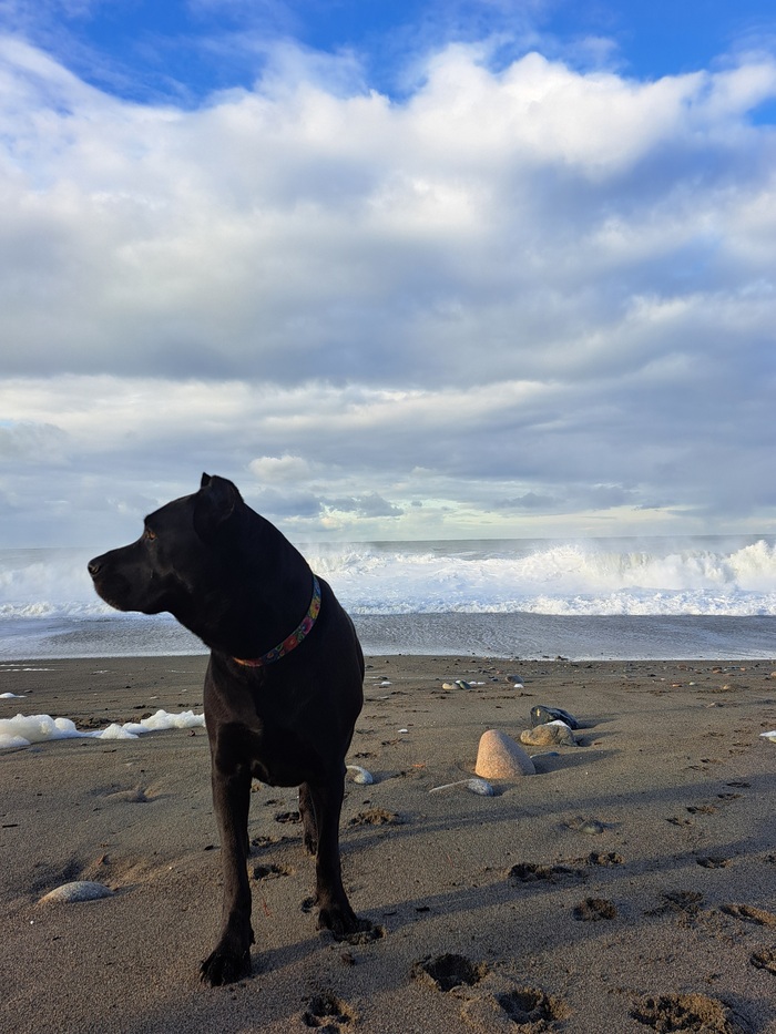 Пошли с утра с пёсой к морю прогуляться, шторм посмотреть. Красивое, конечно. Такая грохочущая мощь природы! Прям чувствуешь себя маленьким-маленьким человечишкой. И проблемы свои кажутся совсем уж крошечными. Потому как настоящее, великое- оно вон какое! И вроде как легче, что ли. Люблю шторм смотреть.