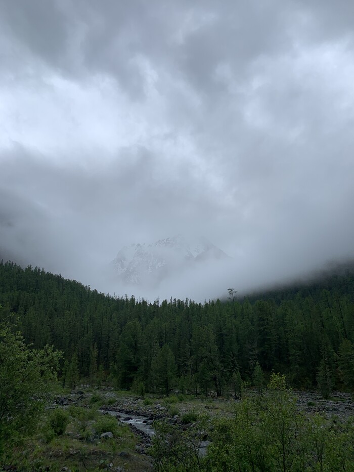 В этот день мы встретили сразу несколько компаний туристов по 2-4 человека, которые брели в сторону озёр через эту стену дождя. Мы им совсем не завидовали!