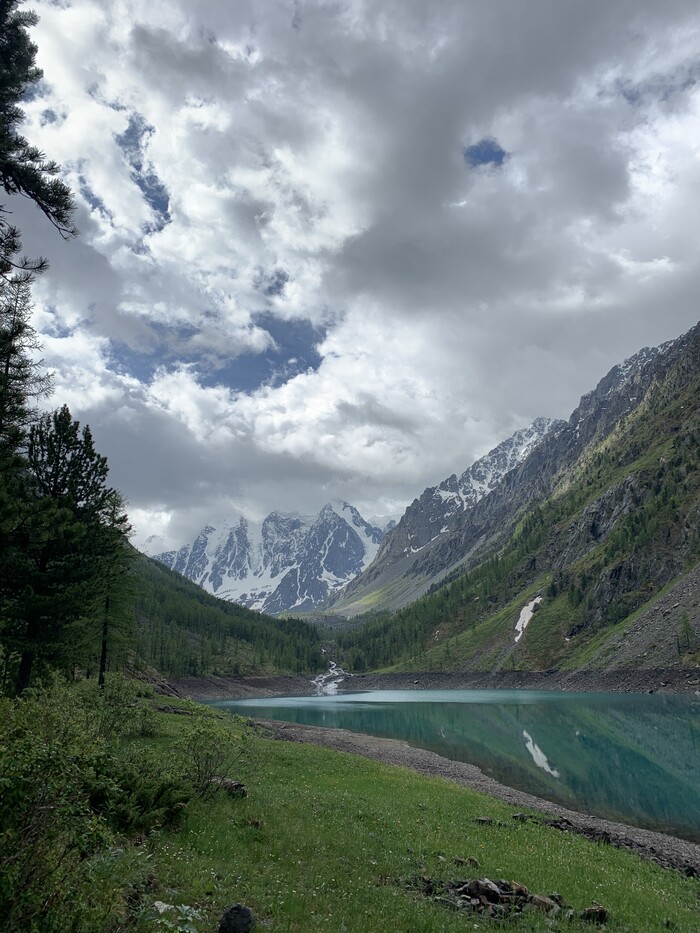 Покидая озеро, мы прошли мимо туристов из Новосибирска. Они тоже собирались в обратный путь. Пожелали друг другу хорошей дороги. Вскоре мы кинули прощальный взгляд на озеро и вышли на тропу.