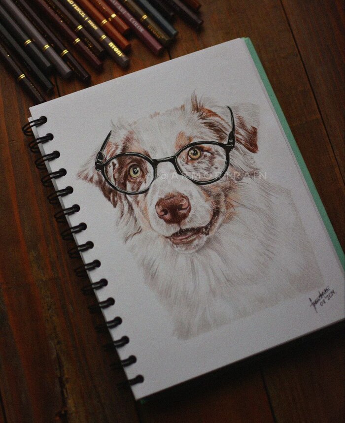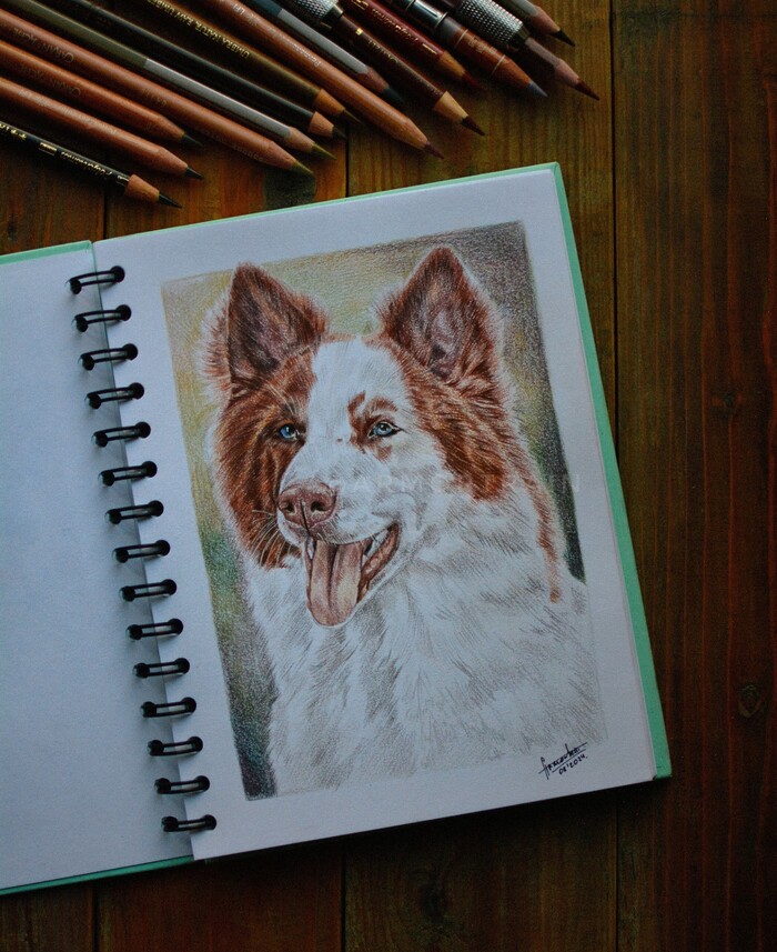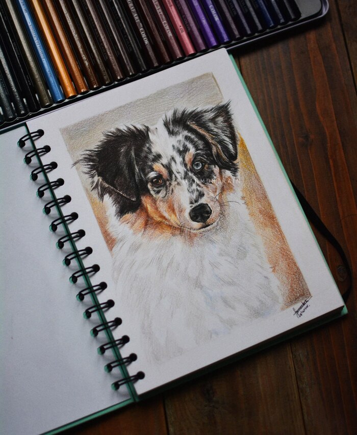 И вот этой весной ко мне обратилась девушка с заказом точно такого же портрета. Исходное фото собаки я не нашла и стала искать в интернете. И очень удивилась, когда нашла свою работу на eBay🤓