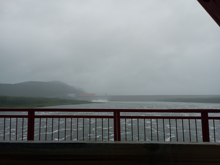 Проехали мимо ГЭС, и я открыла окно, чтобы заснять, как производит сброс.