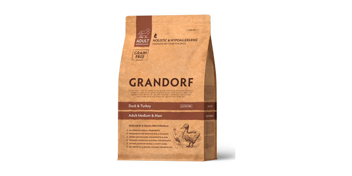 Grandorf 4 Meat Recipe Adult, один из лучших кормов 2024 года, занимает второе место в рейтинге для крупных пород собак. Включает четыре вида мяса: индейку, кролика, утку и ягненка, составляя 65% состава. Это обеспечивает полноценное питание и поддерживает здоровье питомца. Корм содержит коричневый рис и живые пробиотики, способствующие здоровой микрофлоре кишечника.
