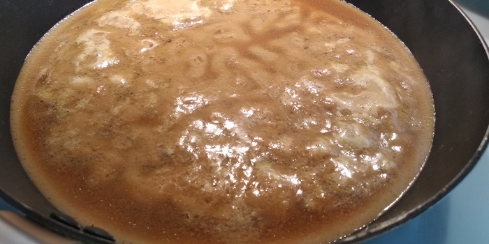Процеживаем маринад , последний выпариваем на сковороде до густоты.