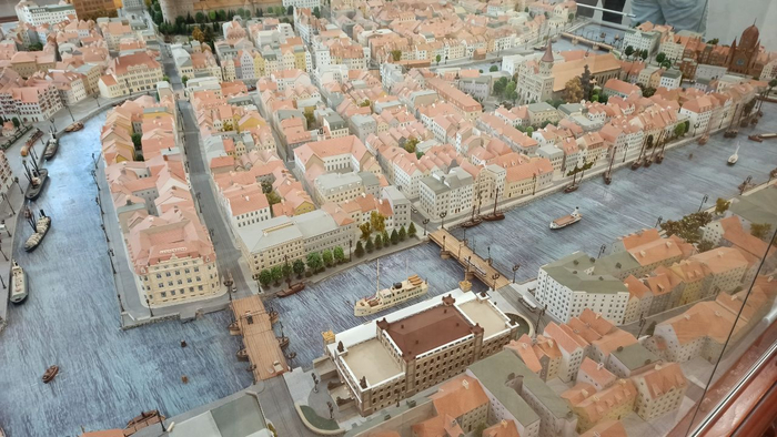 Хотя философия Канта для меня пока слишком сложна (кое что я пытался читать), заглянуть в очередной раз музей было интересно. Тут кое что изменилось с моего прошлого посещения, в частности добавились интерактивные элементы. Но больше всего мне нравится макет острова Кнайпхов и окрестностей. Он дает хорошее представление о плотности застройки и масштабах работы английской авиации, которая стерла почти все с лица города Кёнигсберг. Также было интересно вновь взглянуть на библиотеку Валленродта и масонскую атрибутику. Если не ошибаюсь, в Кёнигсберге действовали три масонские ложи.