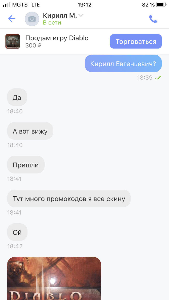 Начал присылать мне кучу фоток разный кодов, включая базовую версию диабло, тут я уже начал подозревать развод)