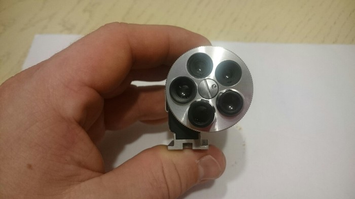 Фокусировка тут осуществляется не поворотом корпуса объектива, как на Смене, а таким вот рычажком. Мне он чем-то напомнил рычажки из салона некоторых моделей "Жигулей" :-)