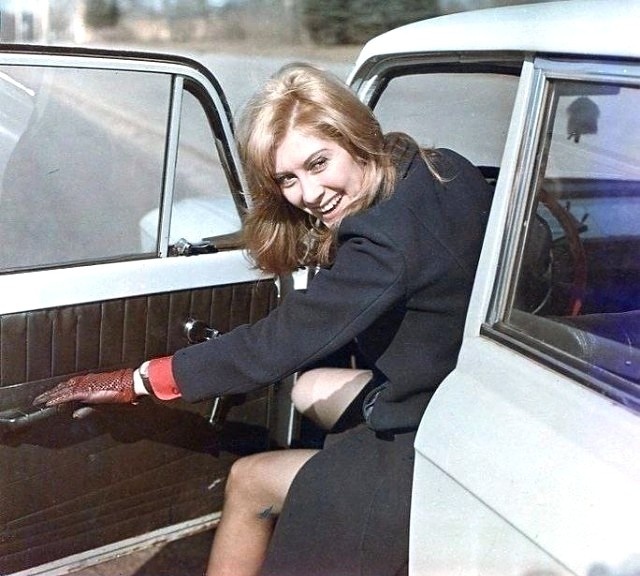 Ирина Мирошниченко за рулём "Москвича", 1970-е.