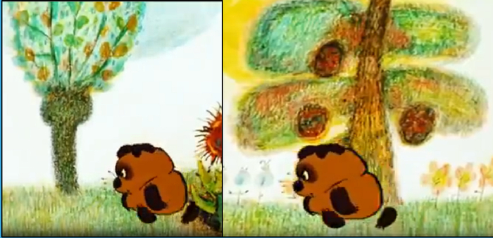 Помещаем Пятачка относительно дерева согласно кадру с ним и совмещаем с Пухом. Что получается-