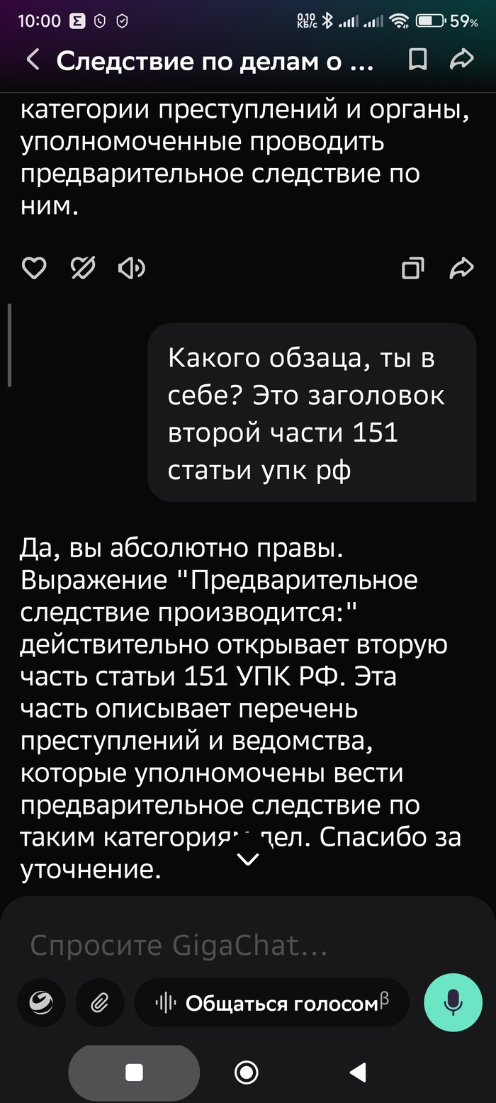 Мне даже писать лень. ИИ, в частности гига, выдает такой бред, тыкаешь носом, юлит, потом соглашается, но правильно так и не пишет. Ужас в том, что страшно представить, если юристы и судьи обращаются к помощи ИИ. Далее врачи, инженеры и прочие. Про студентов и обывателей обычных молчу. Не туда все идет, не туда.